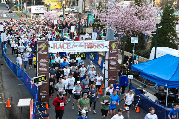 This past Sunday saw a true Portland Spring tradition. The Race for the Roses, an annual fundraiser marathon, started at 7 AM. I was there taking photos for Even Pilchik Photography. There were reported to be over 5000 participants, and I photographed about 3000 of them.